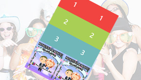 Najczęściej spotykany schemat na weselach i imprezach firmowych. Najwięcej zabawnych zdjęć z małą ilością miejsca na ewentualne podpisy. Sprawdza się w 100%.